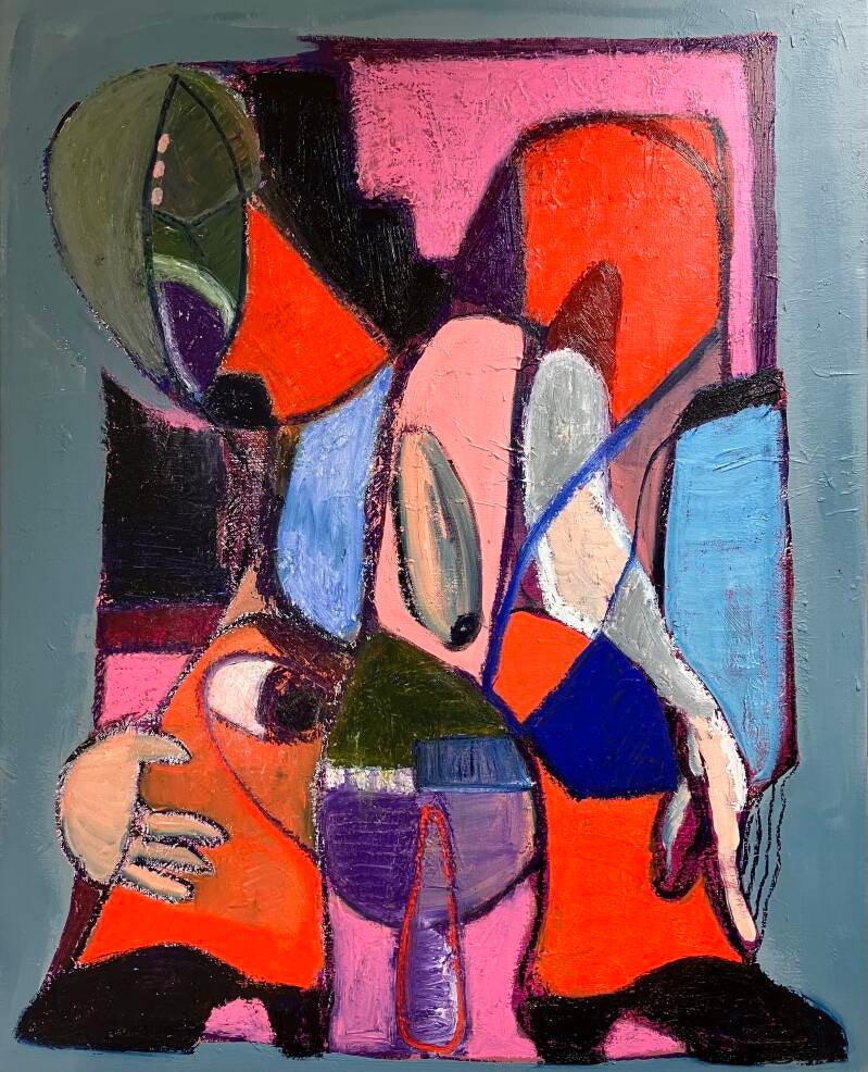 Acryl en olieverf/ oliesticks op doek